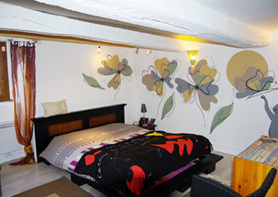 – sur des murs très irréguliers ou abimés, je propose des solutions de reliefs. J’appliquerai alors une couche ou sous-couche de peinture préalable à la réalisation du décor mural,